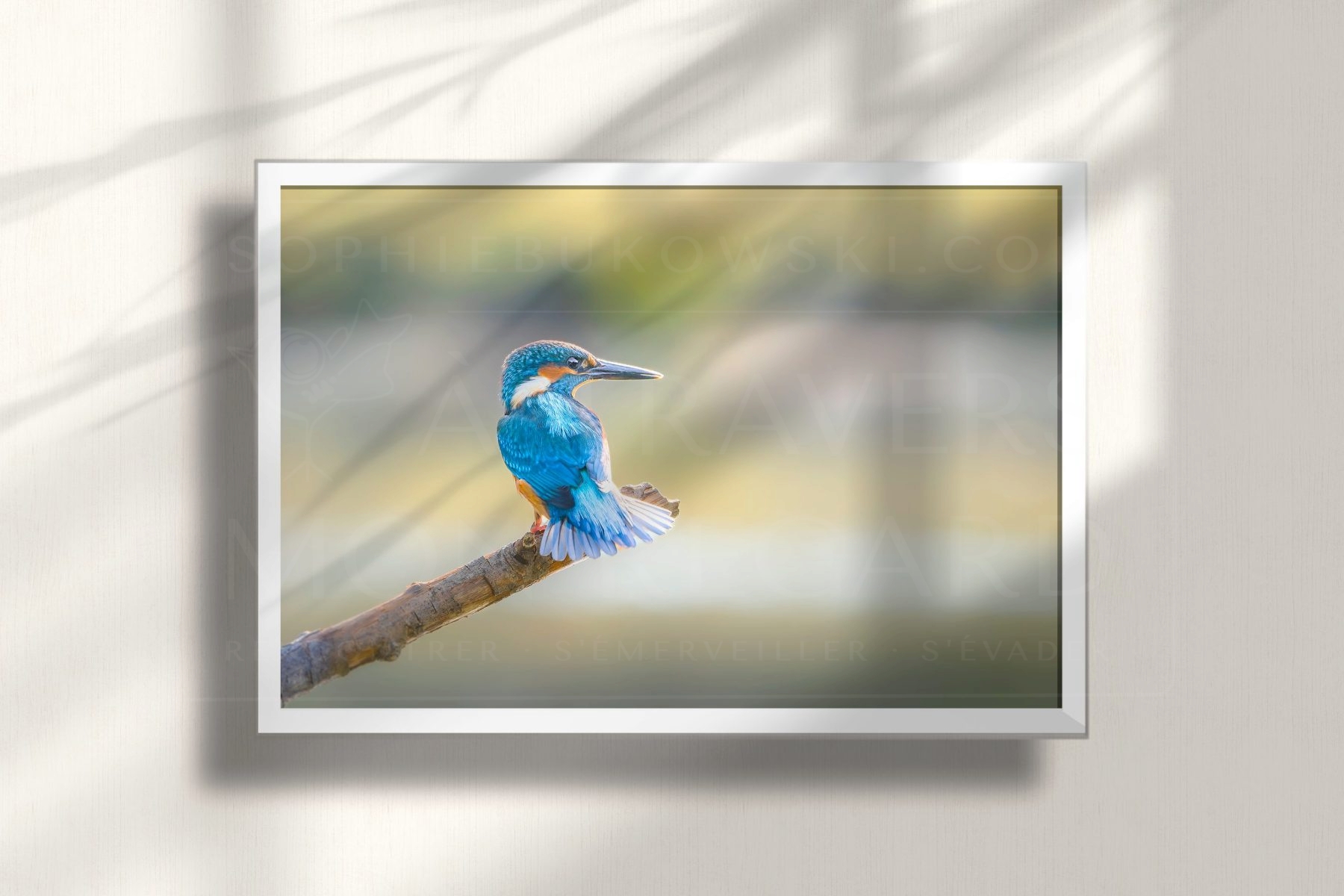 Martin pêcheur dans la douce lumière d’une soirée d’été. Photo imprimée en 10×15 cm sur un papier photo professionnel.